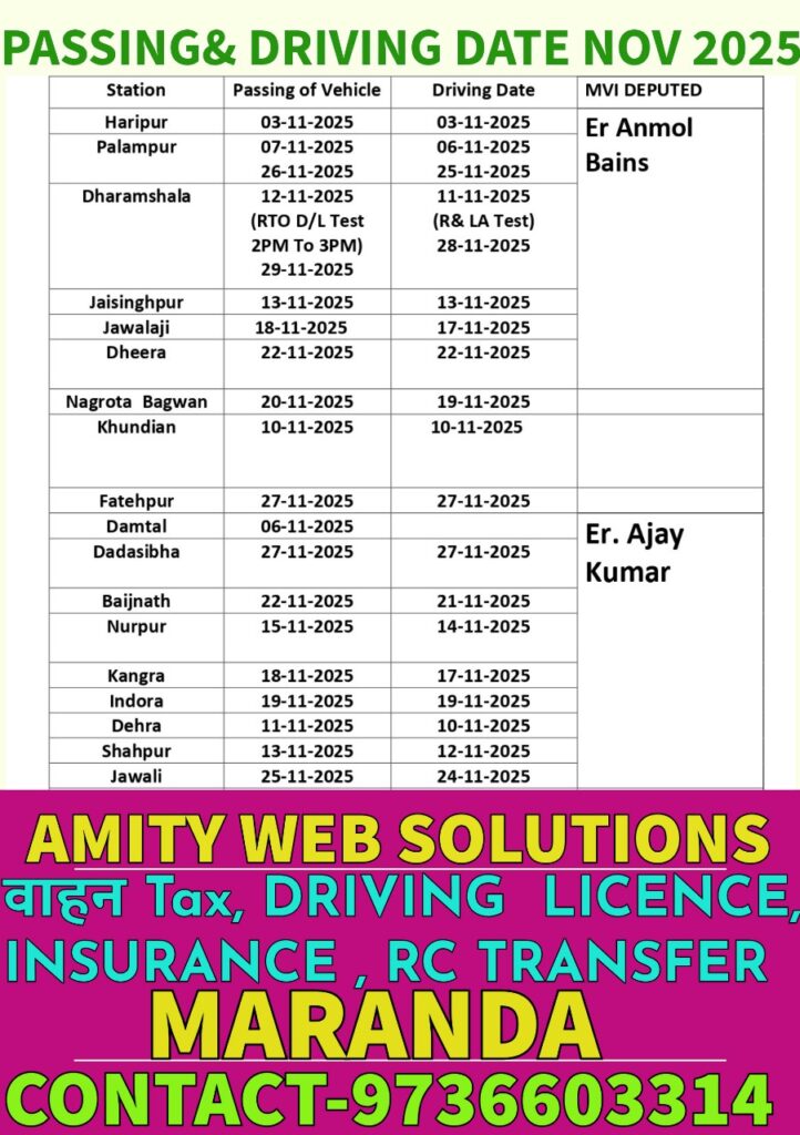 PASSING & DRIVING SCHEDULE NOVEMBER MONTH 2025